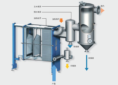 氣液分離器是提供物料和二次蒸汽分離的場所,分離器的設計要充分考慮蒸發量、蒸發溫度、物料粘度、分離器液位等因素。