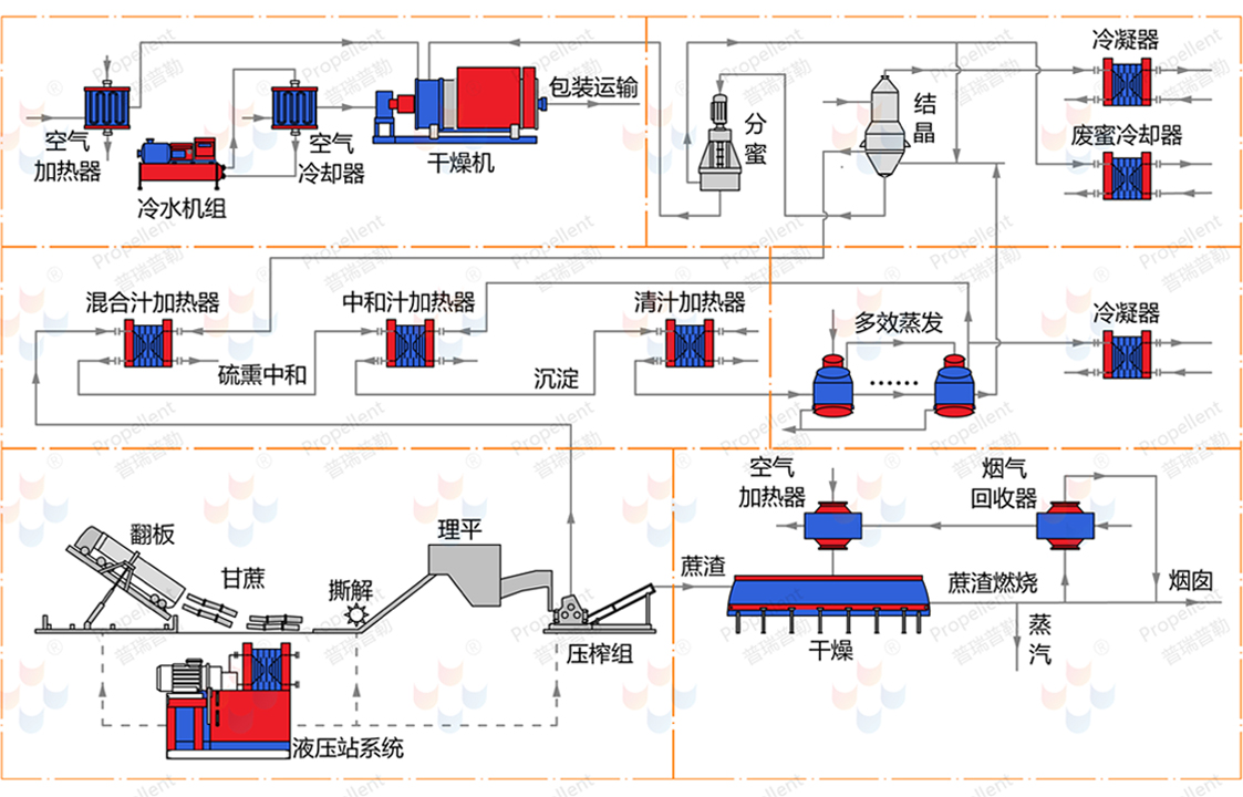 蔗渣輸送——熱風(fēng)干燥——蔗渣燃燒——蒸汽/發(fā)電
