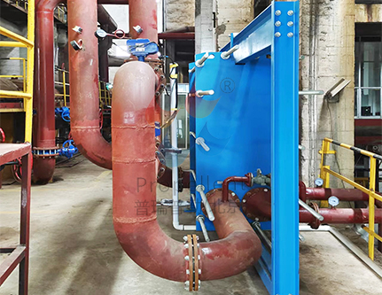 板式冷凝器用于蒸汽和乏汽冷凝,可完全冷凝糖漿汁汽,回收冷凝水。特殊的波紋流動形式特別適合于二次蒸汽冷凝,降低汁汽側(cè)的壓力損失。