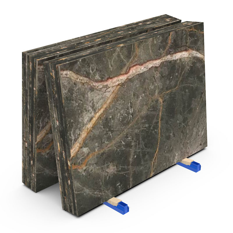 A字石材存放架的底座有保護木材,立柱表面也有橡膠緩沖材料,可以保護石板表面不受損壞;前端設有安全柱,以防石板脫落砸傷人員