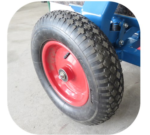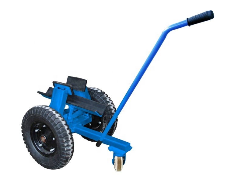 Slab carrying trolley with vulcanized rubber on the bottom, sides, and top to avoid chipping the edges of finished workpieces. It is an ideal tool for moving slabs on rough ground and building sites.