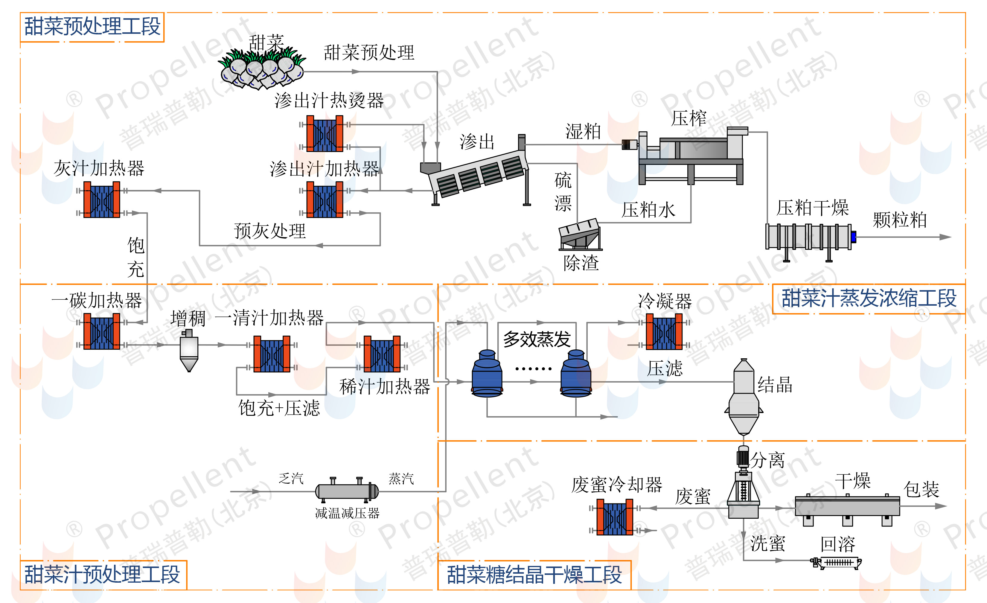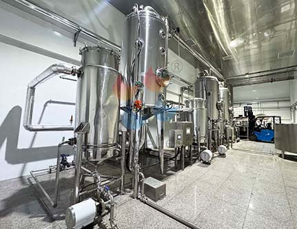 多效蒸發(fā)濃縮:甜菜汁依次進入蒸發(fā)系統(tǒng)進行濃縮,提高糖錘度,降低噸糖汽耗。